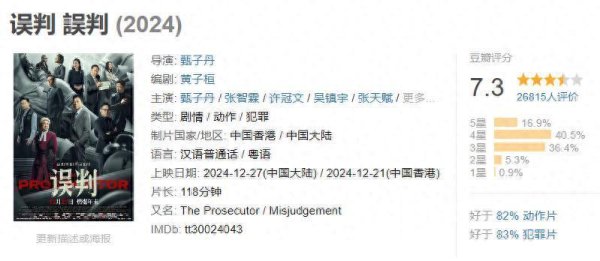 按兴味讲,甄子丹的《误判》27日上映才是上映首日,但票房变现一派低迷。