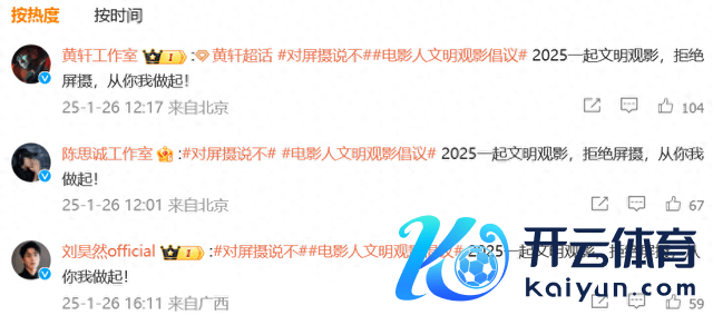 其中,内地著名演员黄轩就敕令公共"2025统共闲雅不雅影,拒却屏摄,从你我作念起!"刘昊然也转发并勉励公共"2025一同闲雅不雅影,重视每一次不雅影体验"。可见,明星们关于这次倡议的怜爱进度。