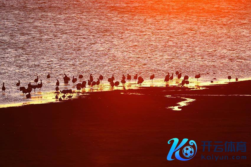 日落时大山包的鹤群。大山包黑颈鹤国度级当然保护区管护局供图