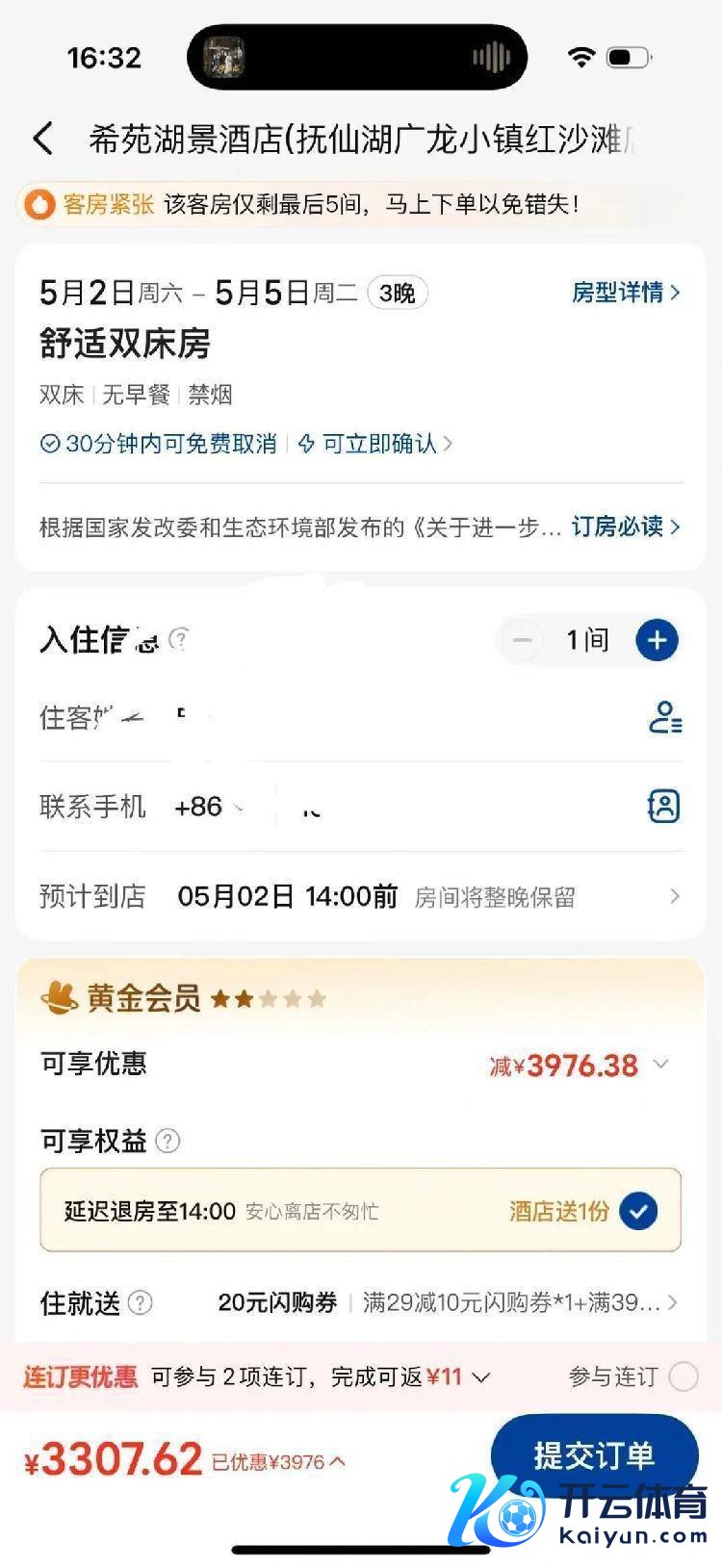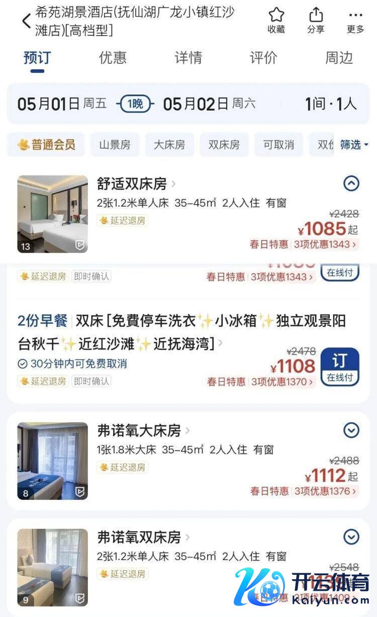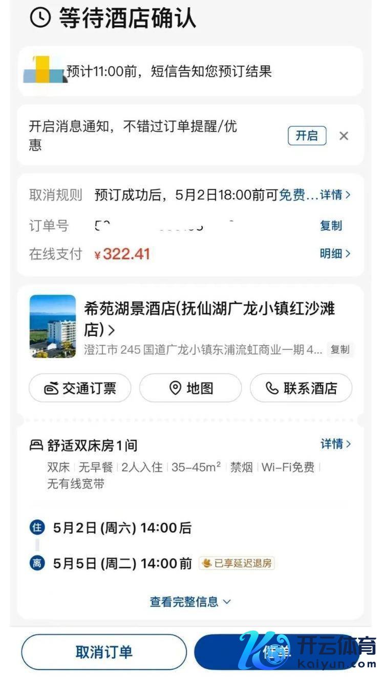 极目新闻记者 王灿开云体育(中国)官方网站 3月27日,又名女网友响应,她之前在第三方平台上预订云南澄江市抚仙湖近邻一酒店的客房,下单后对方一直不说明,临了酒店将其订单取消,她准备再次下单时,却发现酒店客房价钱一忽儿涨了超10倍。 该网友称,两天前她在第三方平台上预订澄江市抚仙湖近邻的希苑酒店,5月2日到5日三晚的客房,优惠后总价为322.41元,她在平台付款下单后,酒店方却一直不细目这笔订单,平台上显现订单失败。她随后跟酒店在线客服相易,对方示意,是第三方平台上错了价钱,酒店相关东说念主员已