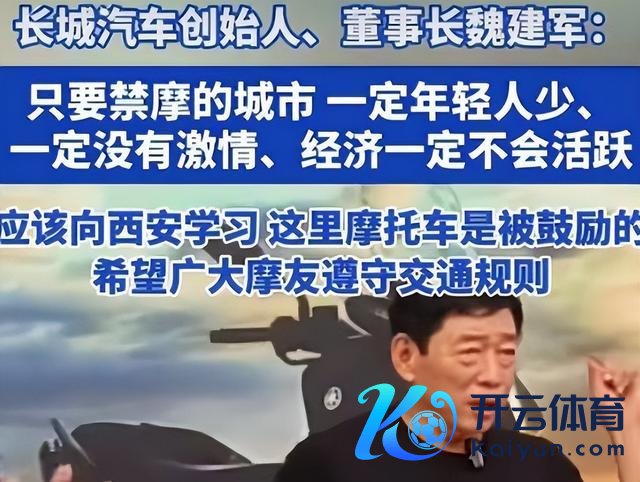 长城汽车独创东说念主魏建军也觉得,禁摩策略和经济发展趋势相背,摩托车的玩乐属性和高端浮滥后劲被严重压制,不利于产业发展和浮滥升级。