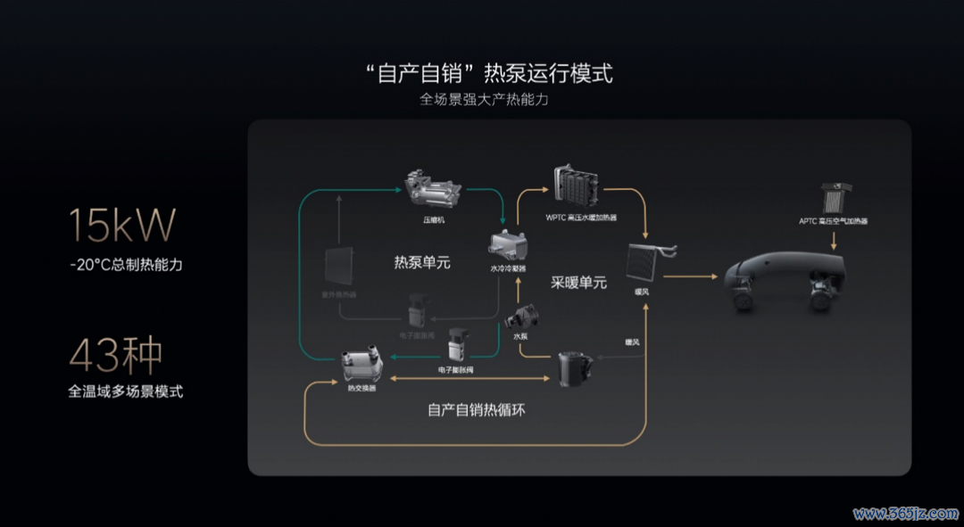 关于东谈主体而言,频繁在24℃阁下环境温度中,悠然性体验最佳。在朔方漫长冬季环境下,要使车内达到悠然温度,需要跳动几十度的温差,这时就需要有一套远大的热料理系统来提供饱和的制热才气。