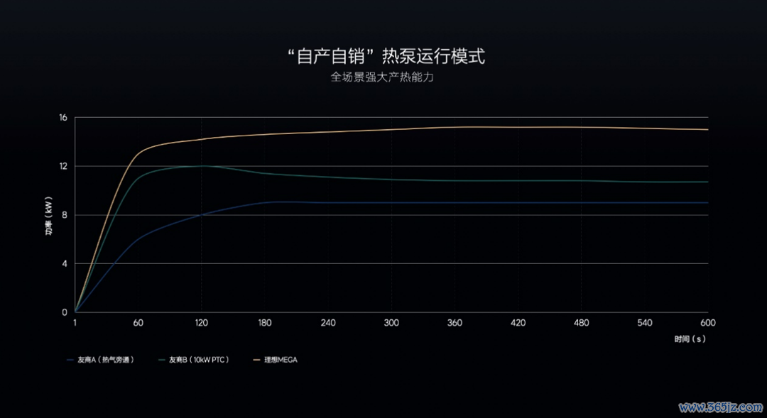 为了处置这两种老例解法的瑕疵,理思MEGA接管了自研多源热泵系统,具备43种步地不错豪迈全温域多场景下的能量调配。关于低温下空调采暖后果不好的问题,可通过压缩机“自产自销”快速制热:独揽空调采暖后温度依然比较高的冷却液快速加热冷媒,激活热泵单位,使电动压缩机产生至极的制热才气。这套有筹办与行业老例作念法的制热才气的对比: 采暖速率更快,峰值制热才气更大。