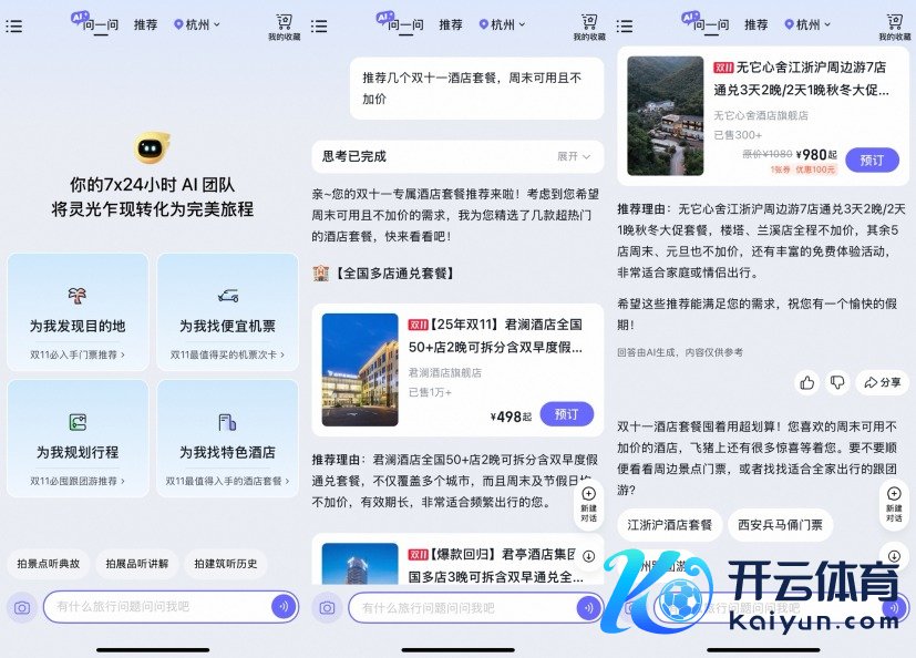 近日,飞猪AI“问一问”的专科旅行助手“团队”中新增了一位“双11选品助手”欧洲杯体育,它能字据用户需求,保举合乎的机票次卡、货仓套餐等飞猪“双11”活动商品,并补助一键跳转商品页面稽查细目和购买。 举例,当用户条目“保举几个‘双11’货仓套餐,周末可用,况兼不涨价”,“问一问”会先分析用户需求,或然指派“双11”选品助手运行责任,为用户筛选出多款高性价比商品。查阅商品细目页国法,这几款活动商品可预约日历均遮掩周末且不涨价,其中两款元旦、春节假期也不涨价。 此外,“双11选品助手”还能意会特定