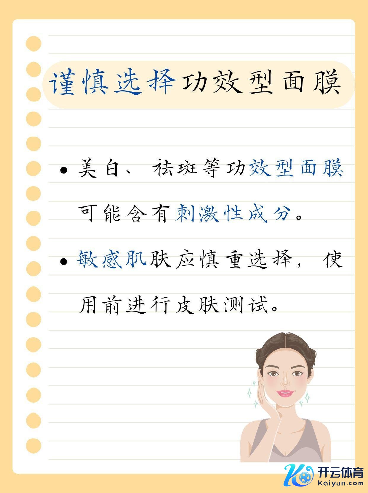 好意思白、祛斑等功效型面膜可能含有刺激性身分,明锐肌肤应在意聘请。使用前淡漠进行皮肤测试,确保无过敏反映。