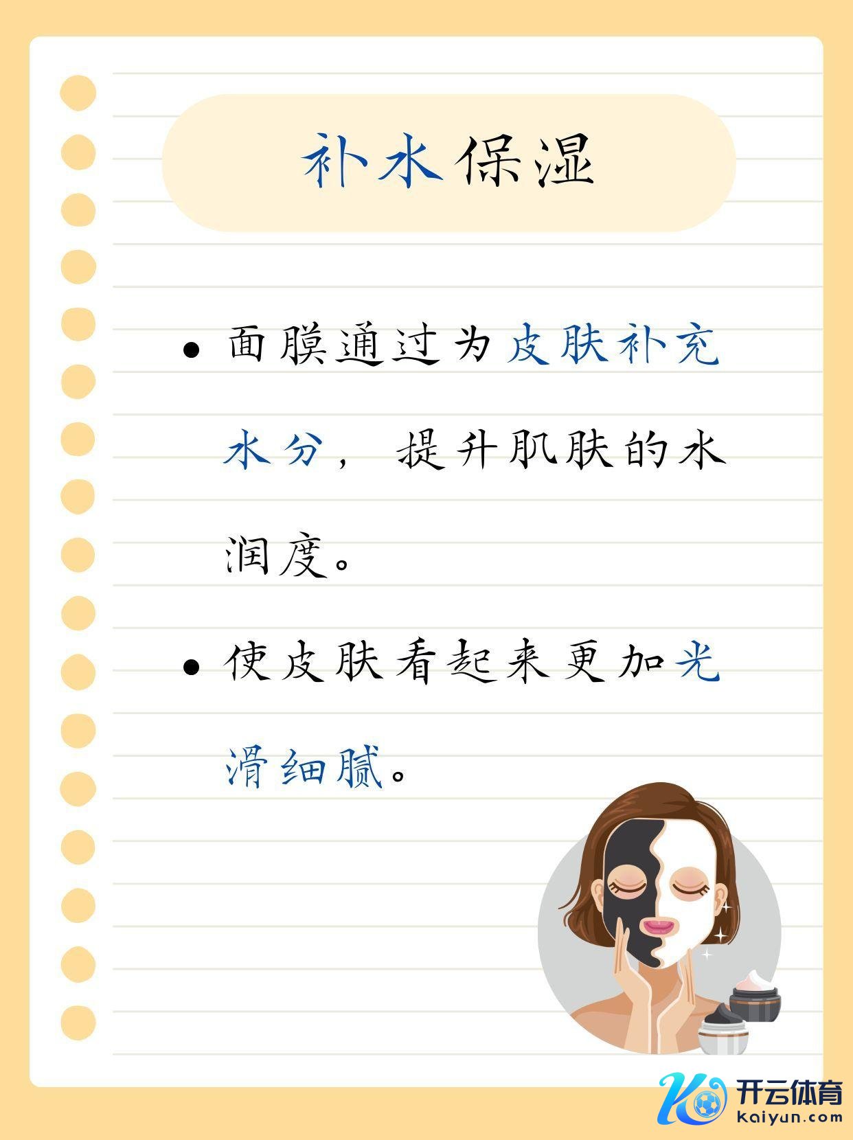 面膜的主邀功能之一是为皮肤补充水分。通过敷面膜,角质层被充分水合,皮肤看起来愈加光滑、精熟。运筹帷幄词,这种后果是暂时的,需配合闲居保湿照应以看守。