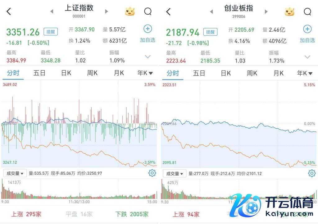 至收盘,上证综指跌0.5%,报3351.26点;科创50指数跌1.25%,报998.61点;深证成指跌1.03%,报10537.4点;创业板指跌0.98%,报2187.94点。