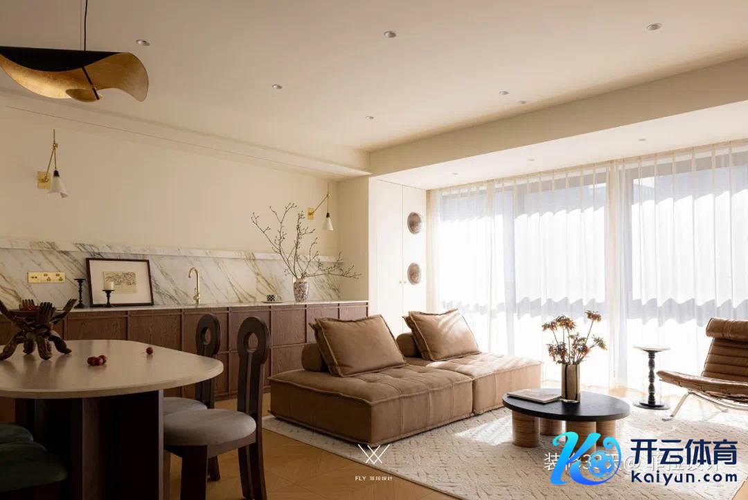 这张图来自菲拉筹谋,整套图片贯穿请点击《90后配头100平中古奶油宝贵念念三室》。阳台高柜的一扇柜门上有两个透明的「天外舱」是专门和猫猫互动的,这个柜子是猫猫的窝。