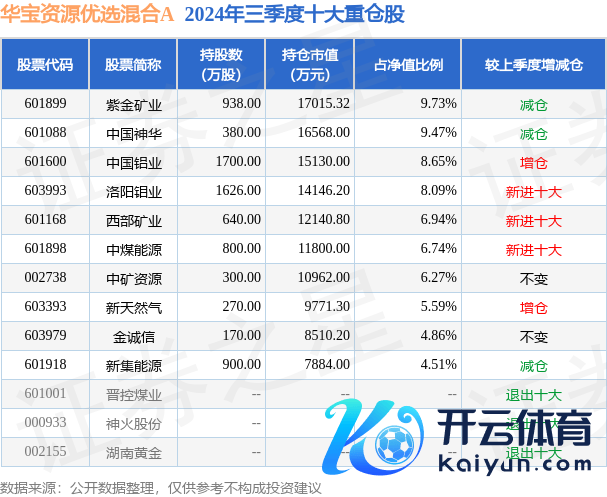 华宝资源优选搀杂A为搀杂型-偏股基金,说明最新一期基金季报线路,该基金钞票成立:股票占净值比86.55%,无债券类钞票,现款占净值比14.31%。基金十大重仓股如下: