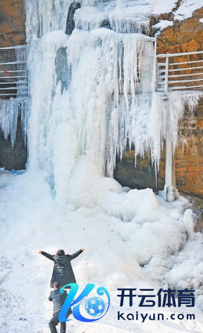 陕西西安蓝田县,秦岭的流峪飞峡酿成冰瀑,搭客前来打卡。