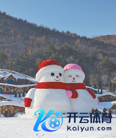 辽宁沈阳东北亚滑雪场的巨型雪东谈主前,搭客在不雅光拍照。