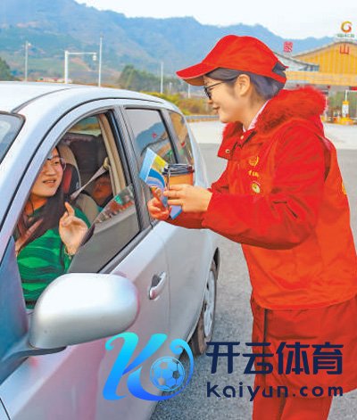 呼北高速广西梧州蒙山西高速进出口做事点,志愿者为搭客奉上春节礼物。