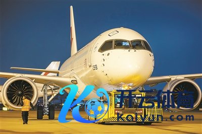 东航本领国产飞机维修部使命主说念主员教导牵引车将C919大飞机牵引至机库。
