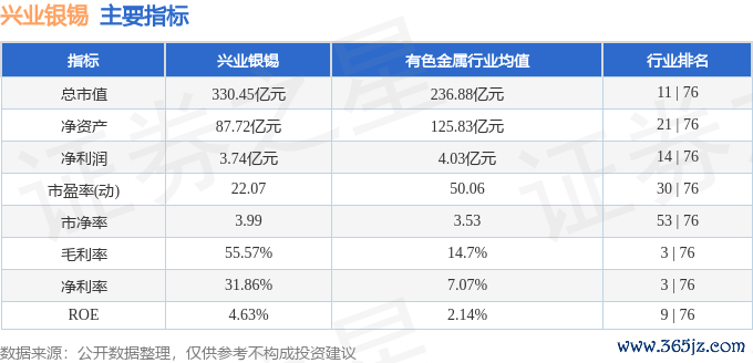 兴业银锡2025年一季报流露,公司主营收入11.49亿元,同比上升50.37%;归母净利润3.74亿元,同比上升63.22%;扣非净利润3.74亿元,同比上升64.08%;欠债率42.34%,投资收益-103.3万元,财务用度5237.9万元,毛利率55.57%。兴业银锡(000426)主商业务:有色金属及贵金属采取与冶真金不怕火。