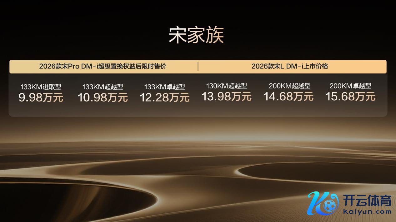 10月23日,比亚迪宋家眷迎来重磅焕新开云登录入口登录APP下载(中国)官方网站,2026款宋L DM-i/宋Pro DM-i双车同步上市,居品矩阵再丰富,限时售价9.98-15.68万元起。