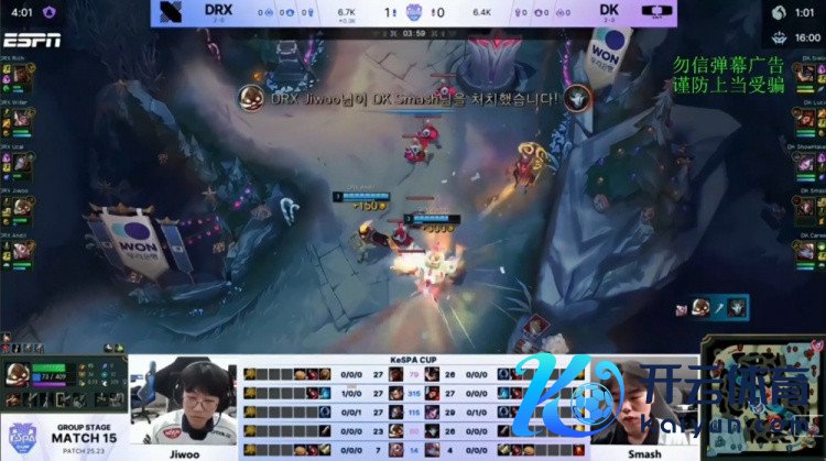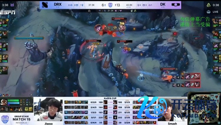 [14:18]DRX野区混战,Lucid山公被开,许哥辛德拉推DRX两东说念主助力Lucid回头反杀Ucal发条,随后许哥再推Vincenzo赵信,Smash烬W将其定住匡助许哥拿到东说念主头,DK打出1换2。