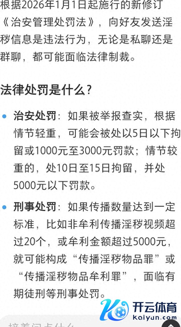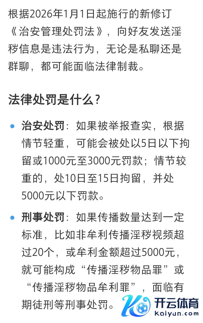 开云(中国)kaiyun网页版登录入口开云体育 “打住!2026年1月1号起,你再这样干,可能真实犯罪了!这不是骇东谈主视听,来望望这条行将成效的新规!” “好多东谈主认为,私聊嘛,你情我愿,警员管不着。但此次新更正的《规律科罚处罚法》,把‘发送淫秽信息’明确列为犯纰缪径,并且没说你只可对生分东谈主发!” “这意味着什么?即使是好友,唯一他/她反感、认为被纷扰,约略信息传播出去酿成恶劣影响,你就有可能踩雷!” “你以为的打趣,在对方或法律看来,可能即是性纷扰的实锤。从‘段子手’到‘犯罪者’,可
