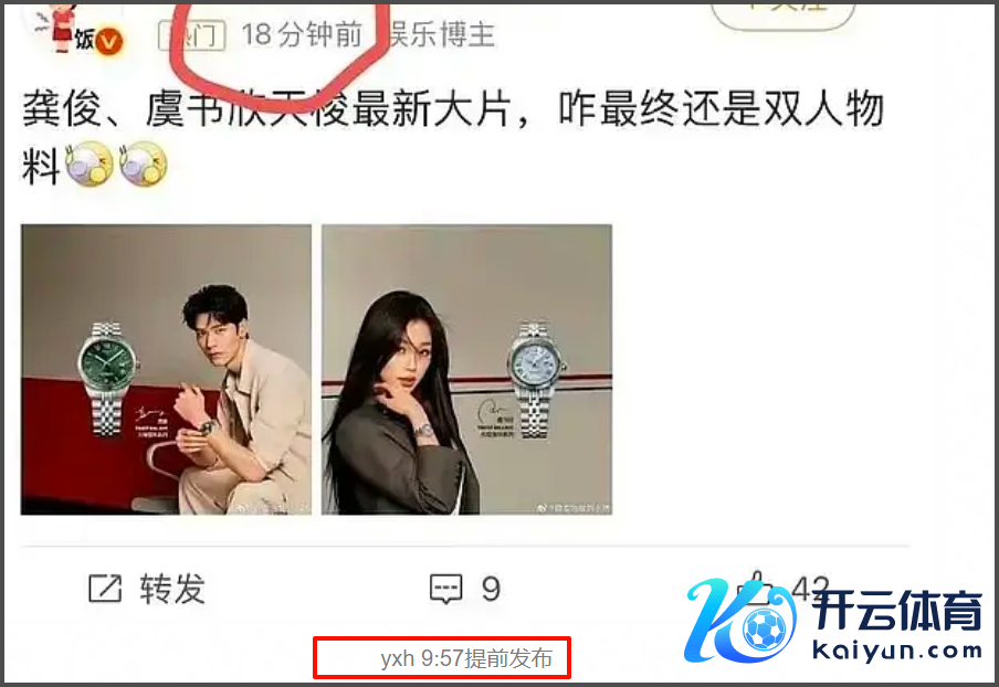 而品牌方本日发布的也仅仅龚俊的单东说念主宣传物料,但比拟意旨的是,多家营销号比品牌更早官宣,致使晒出虞书欣和龚俊最新拍摄的物料海报,奏凯自曝品牌物料泄密偷跑。