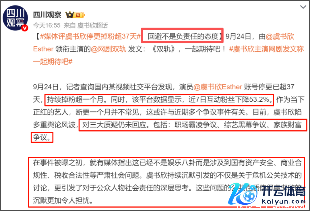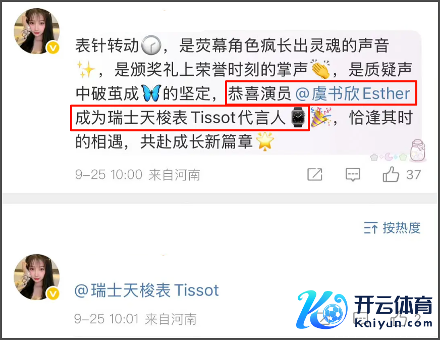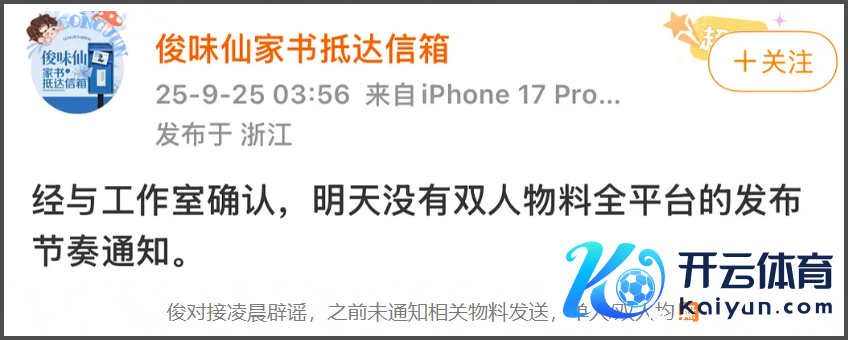 虞书欣眷属资产和霸凌同业风云还在发酵当中,并莫得跟着虞书欣断更一个月而冉冉消弭开云体育(中国)官方网站,反倒因为她的执续不复兴而愈演愈烈,代言作品王人受到影响,蓝本定好的品牌宣传也临时取消,引起网友热议。 据悉,原定虞书欣会在9月25日官宣新的代言物料,对接前一天深夜就发文求教粉丝作念好控评准备,说品牌会全平台宣发虞书欣和龚俊的双东说念主物料。 吓得龚俊对接凌晨上线辟谣,否定有双东说念主物料全平台发布的说法。 而品牌方本日发布的也仅仅龚俊的单东说念主宣传物料,但比拟意旨的是,多家营销号比品牌更