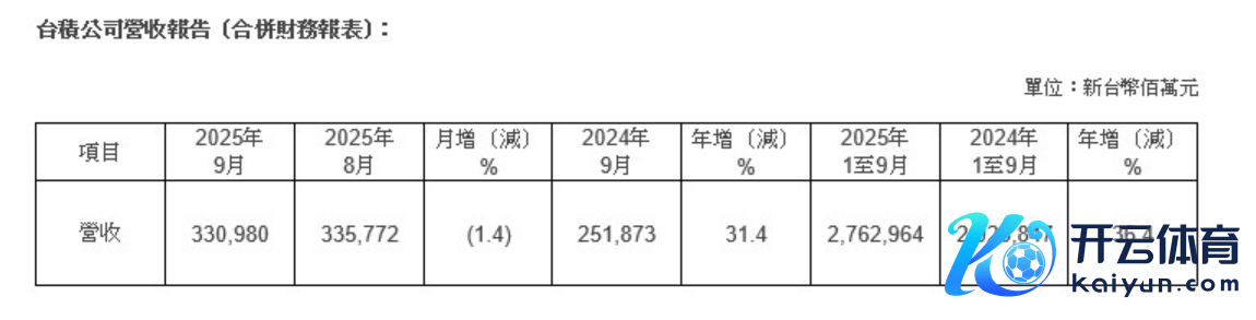 台积电:9月兼并营收3309.8亿元新台币 同比增多31.4%台积电:9月兼并营收3309.8亿元新台币 同比增多31.4%