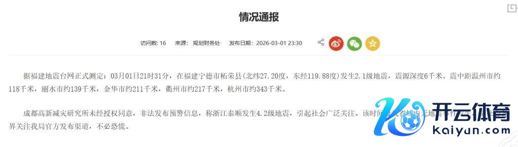 浙江省地震局3月1日晚发布情况通报称,据福建地震台网认真测定:03月01日21时31分,在福建宁德市柘荣县(北纬27.20度,东经119.88度)发生2.1级地震,震源深度6千米。震中距温州市约118千米,丽水市约139千米,金华市约211千米,衢州市约217千米,杭州市约343千米。 成齐高新减灾不时所未经授权应许,犯法发布预警信息,称浙江泰顺发生4.2级地震,引起社暴露常真贵。该技能段浙江省域内无地震事件发生,请社会各界真贵该局官方发布渠说念,无谓蹙悚。 (开端:浙江省地震局网站)欧洲杯体